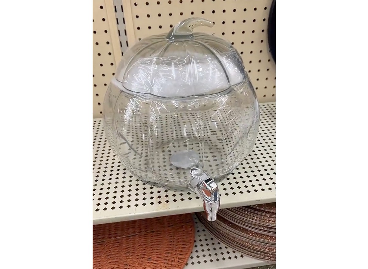 Between Halloween, Thanksgiving, and football parties, fall is a sneakily busy time for entertaining. You can ensure your guests never go without a beverage thanks to the store’s new pumpkin-shaped glass drink dispenser.