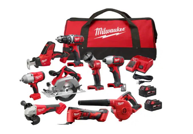 Home Depot is selling this Milwaukee M18 18-Volt Lithium-Ion Cordless Combo Kit (9-Tool) with (2) Batteries, Charger, and Tool Bag for $599. The contents would be worth $1678 if bought separately, making it a serious bargain.