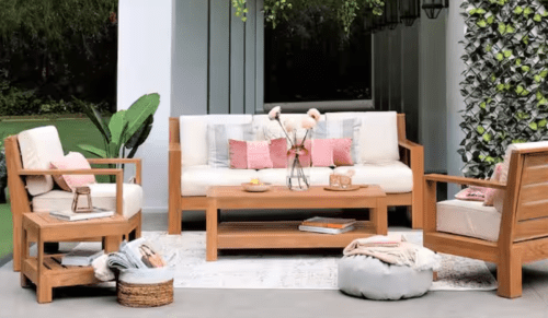 Just in time for warmer weather, Cambridge Casual’s Largo Teak 5-Piece Wood Patio Conversation Set ($4,274) creates a fabulous backdrop for all your upcoming backyard gatherings. The weather-resistant wood set comes with a three-seater sofa, two lounge chairs, a side table, and a coffee table. The extra-thick cushions are outfitted with removable, water-resistant slip covers.