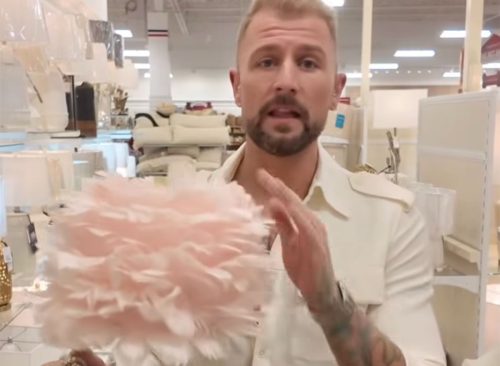 While HomeGoods is where most interior designers recommend shopping for reasonably priced throw pillows, there are some items to avoid. “Have you ever sat on a beaded pillow? They’re so uncomfortable,” he exclaims, holding up a beaded bow pillow. “No one needs this, and they get everywhere and they fall apart.”