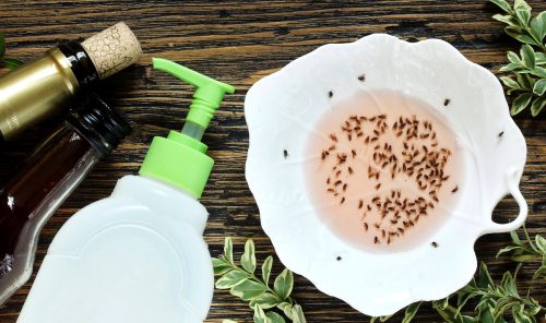 This works similarly to the vinegar trap. “You may either leave the bottle open on the counter to catch the inebriated gnats, or you can arrange a dish with plastic wrap with holes on top,” says Bob. They’ll be attracted to the wine and then get stuck in the bottle or plastic wrap.