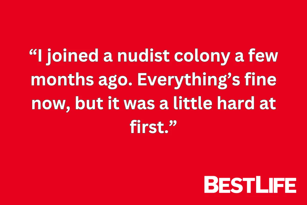 - I joined a nudist colony a few months ago. Everything’s fine now, but it was a little hard at first.