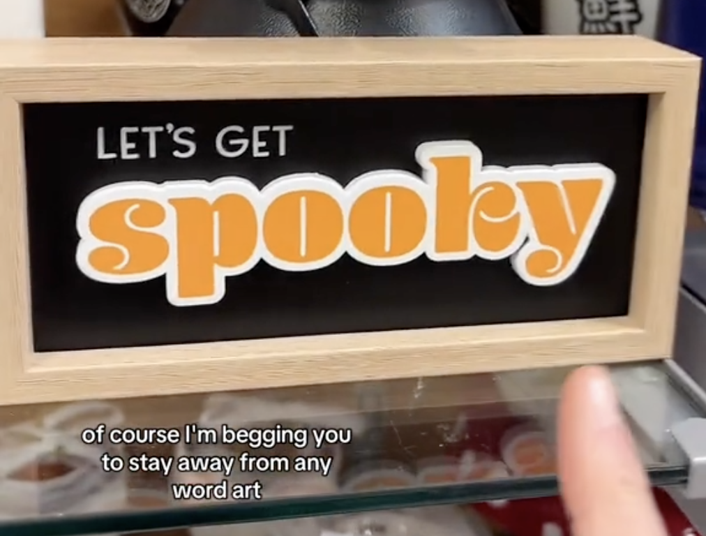 “Of course, I’m begging you to stay away from any word art. Put it down and walk away slowly,” Laura pleaded, explaining that the text canvases, wood blocks with inspirational quotes, and seasonal word art signs aren’t timeless.