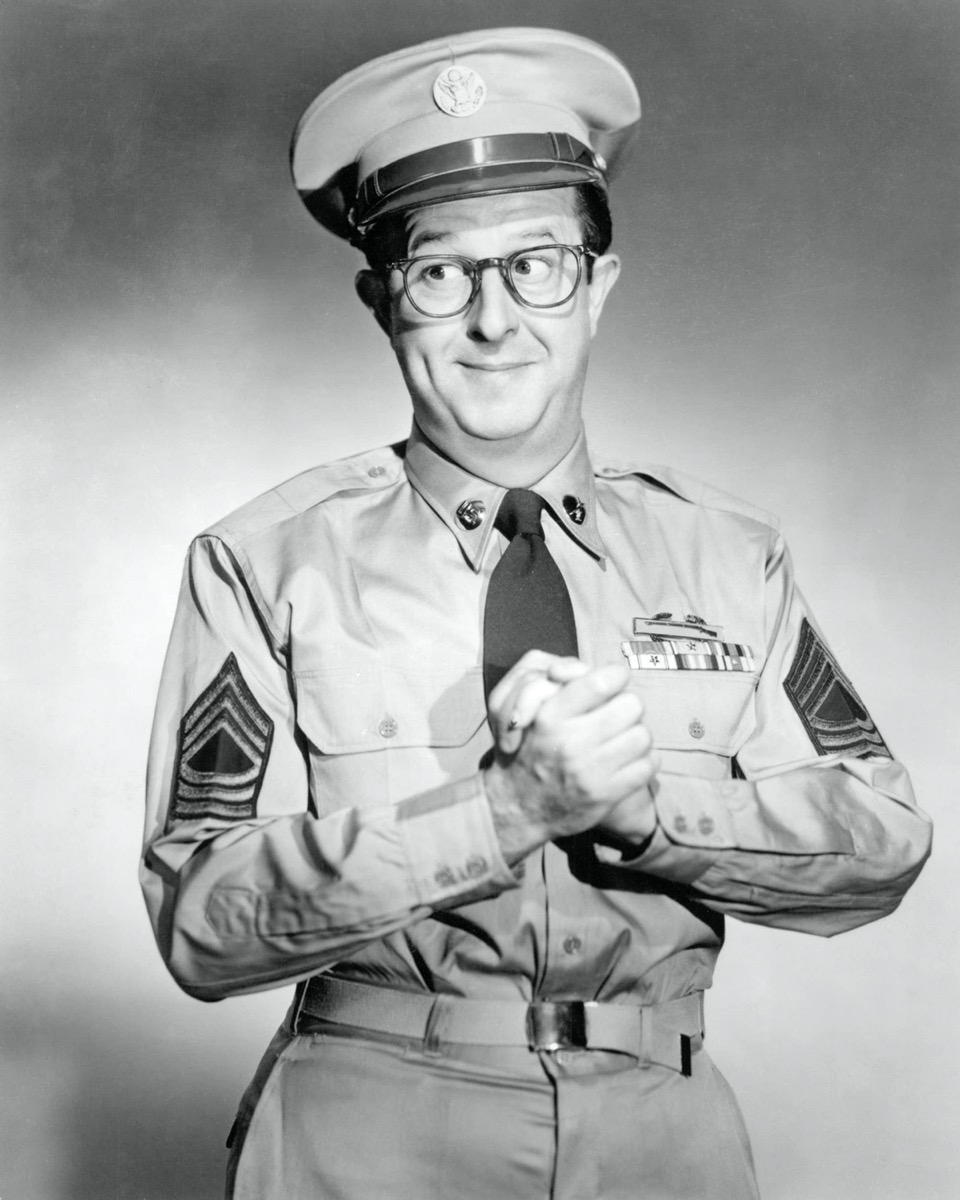 “At the read-through, I heard this, ‘Ay ay ay up’—dad’s line from Sgt. Bilko—and I thought, ‘Someone doing’s Dad.’ Then Dad walked on the stage and everyone stopped still,” she recalled. “The writers were on their knees—he was their idol. It was wonderful and they had it all planned as a surprise for me!”