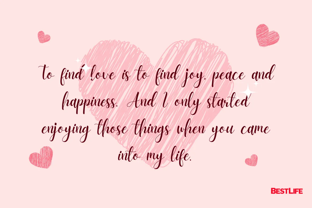 - To find love is to find joy, peace and happiness. And I only started enjoying those things when you came into my life.