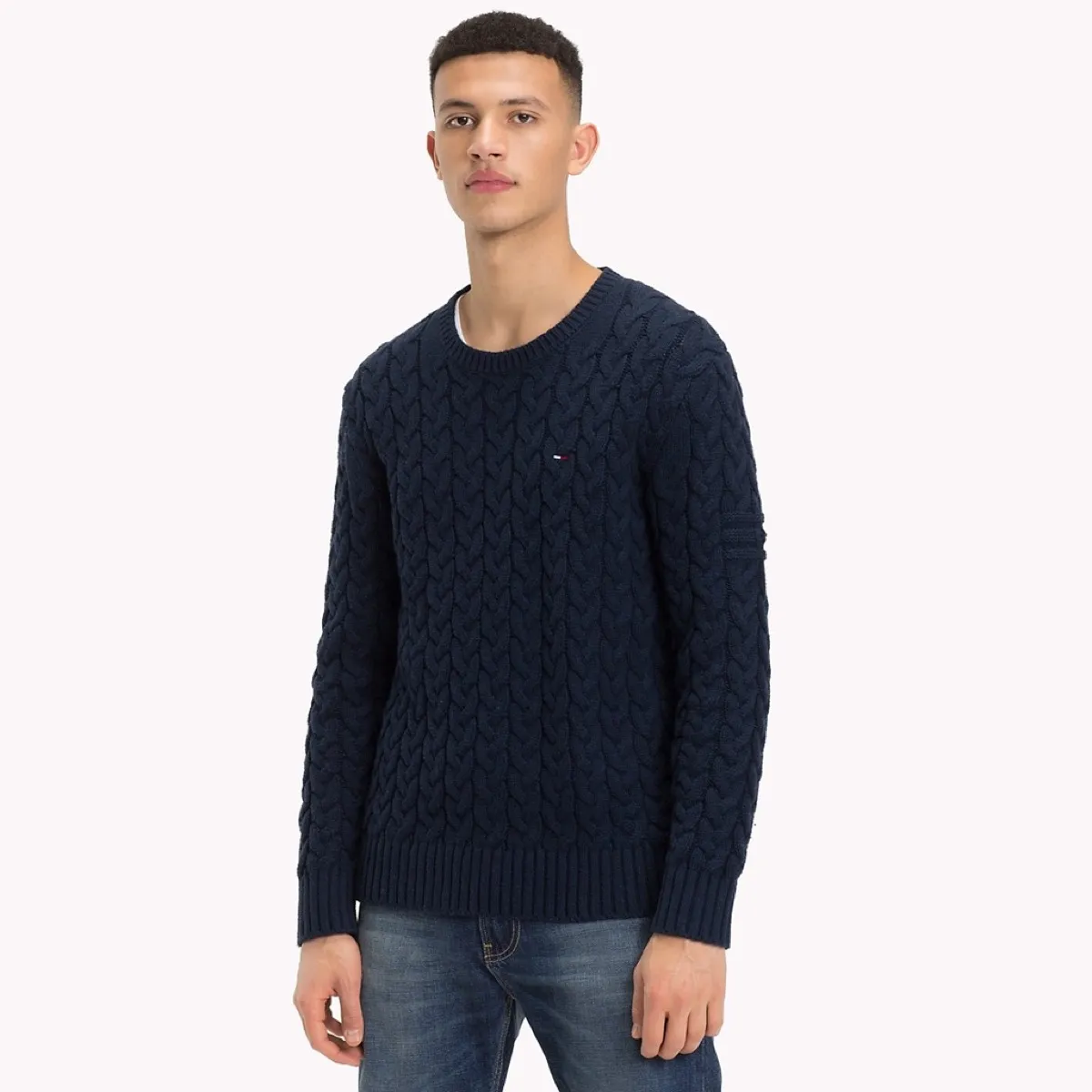 Tommy Hilfiger, the maestro of Americana chic, offers university-style preppy looks for practically every price range. But if you want to hew to tradition—like, say, with a cozy navy cable knit sweater—there are ample options sure to meet your needs.