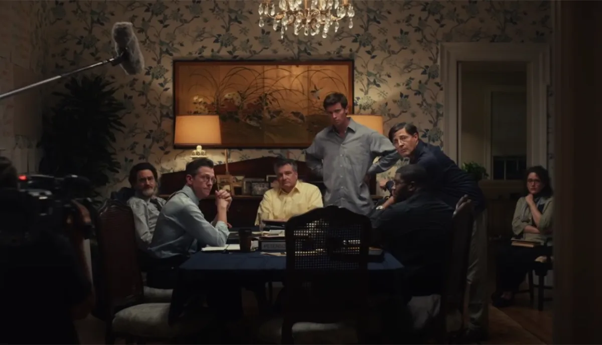 The adaptation features many instances in which Firth’s Michael and Toni Collette’s Kathleen argue, sometimes screaming at one another, about a number of topics, including finances, the family, and his affairs.