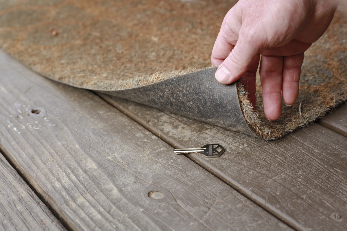 At the end of the day, you’re better off locking yourself out and waiting for someone else to get home than leaving a spare key outside and basically inviting burglars in. Instead, ask if you can leave a spare key at the home of a friend who lives nearby. And for more information on keeping your home, belongings, and loved ones safe, follow these 27 Amazing Personal Safety Tips That Will Change Your Life.