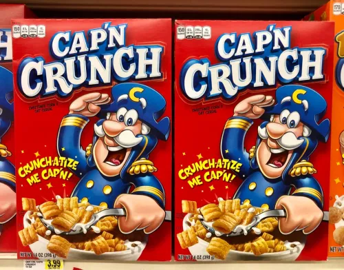 The favorite sugary cereal character has been exaggerating his Navy service for decades. The character (whose actual name is Horatio Magellan Crunch—had to squeeze one more real name in there) wears just three stripes on his uniform cuffs, indicative of a commander, not a captain.