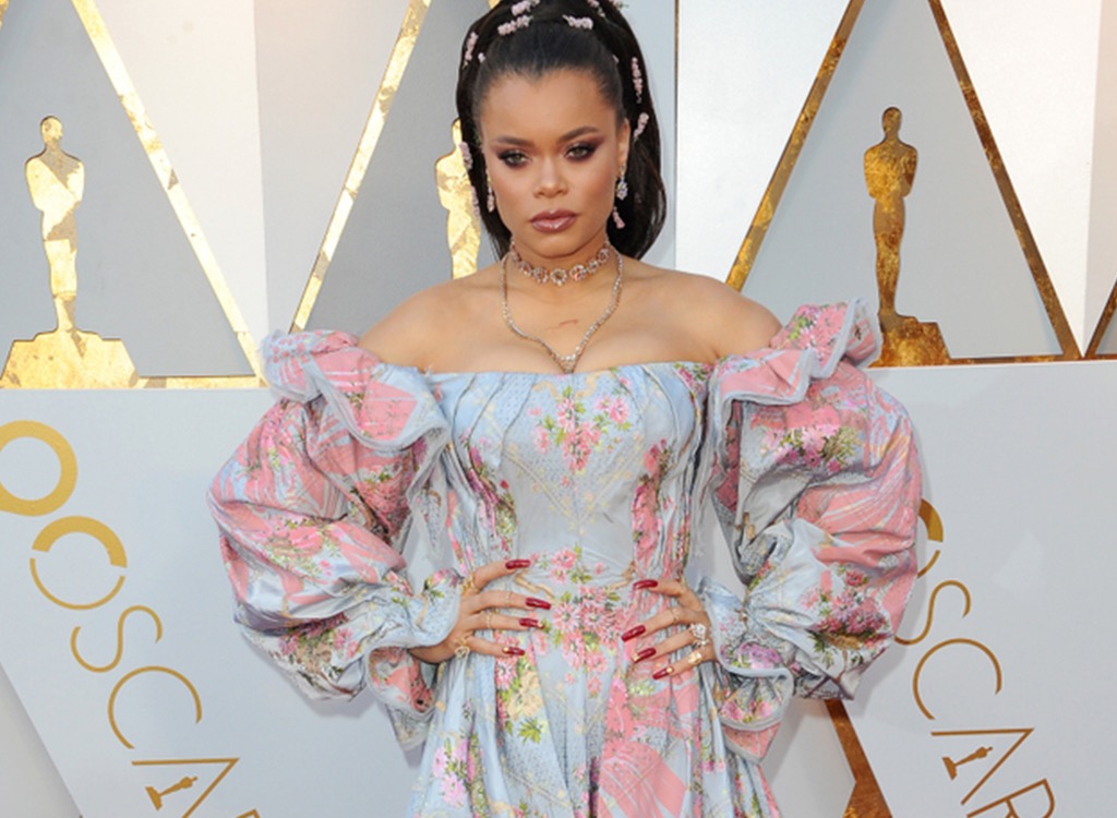 Andra Day‘s outfit at the 2018 Academy Awards looked like she accidentally got trapped in a shabby chic duvet cover and decided to just go with it.