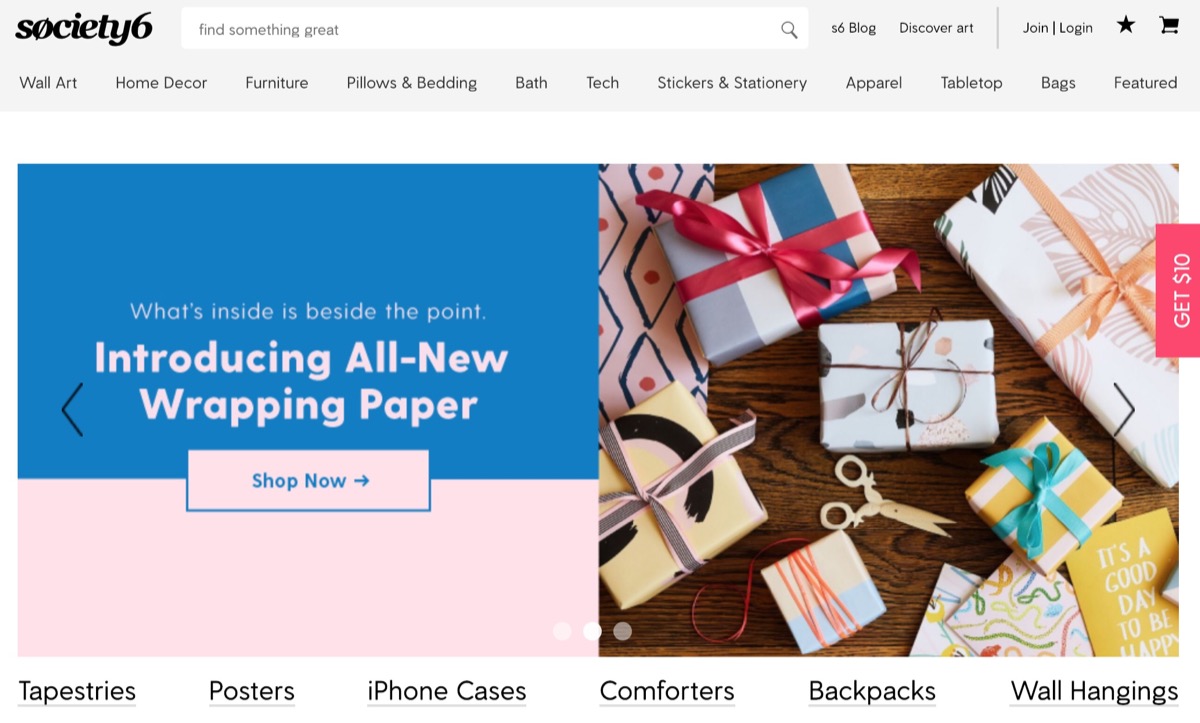 Society6 is a marketplace where everyday artists can upload their original work and sell it on everything from canvases to cotton sheets. However, just because the designs on the site are unique doesn’t mean that they’re expensive. Rather, Society6’s aim is to both give artists exposure and make their work affordable, and so pieces on the platform seldom sell for more than $100.