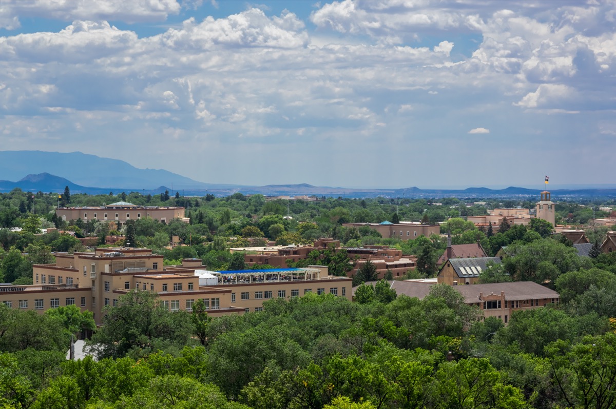 Architecturally, New Mexico’s capitol building, located in Santa Fe, was designed to feature a blend of New Mexico Territorial Revival style and neoclassical influences.