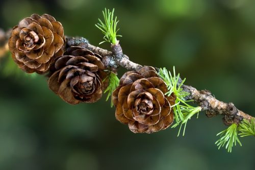 Pine cones open and close depending on the humidity to help their seeds disperse. Light seeds are contained inside the pine cone. When the weather is dry the pine cone opens up, so wind can catch the seeds and allow them to be dispersed in the air far away from the original tree. When humidity rises and rain is coming, the pine cone closes up to prevent the seeds from escaping and becoming waterlogged.