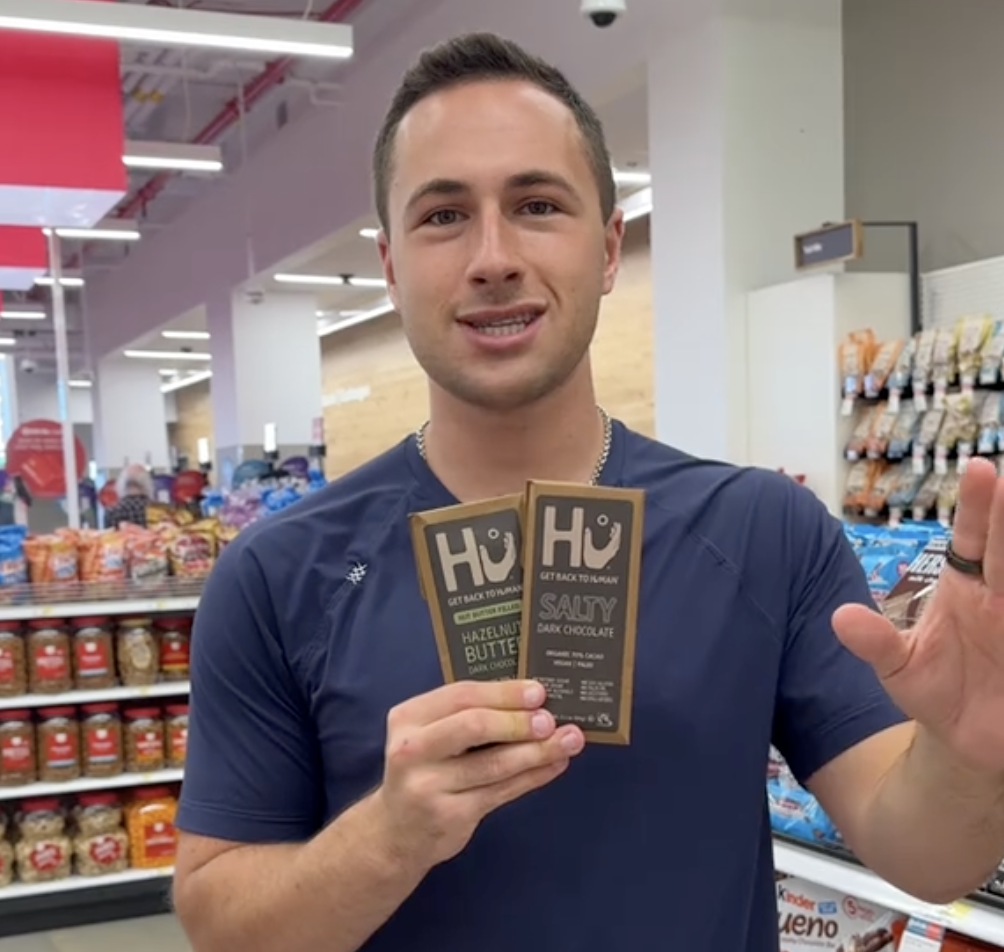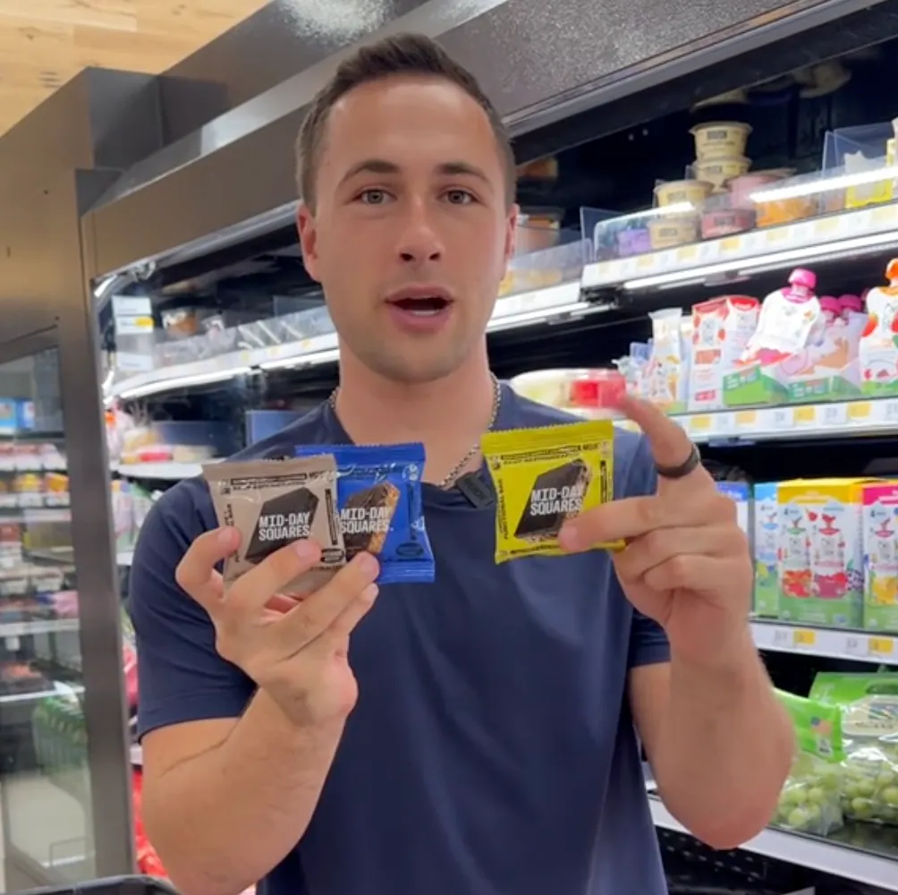 In his video, @healthwithhunter says his “favorite functional chocolate bar” is Midday Squares, which contain protein, fiber, and healthy fats. You can also grab three for less than $10 at Target!