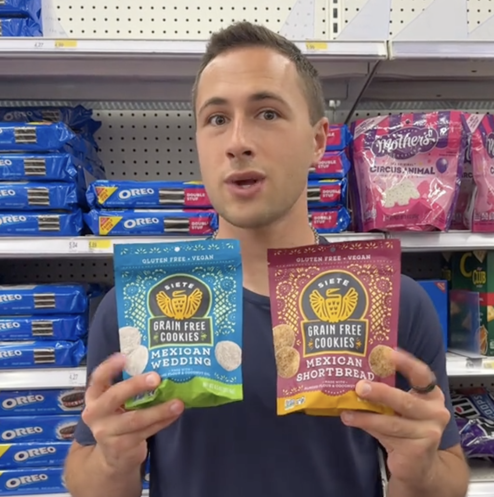 “These Siete Cookies are so delicious, you can’t go wrong with them,” he says, holding up bags of the Mexican Wedding and Mexican Shortbread flavors. The best part? This product is literally a sweet deal at $5.99 per pack.