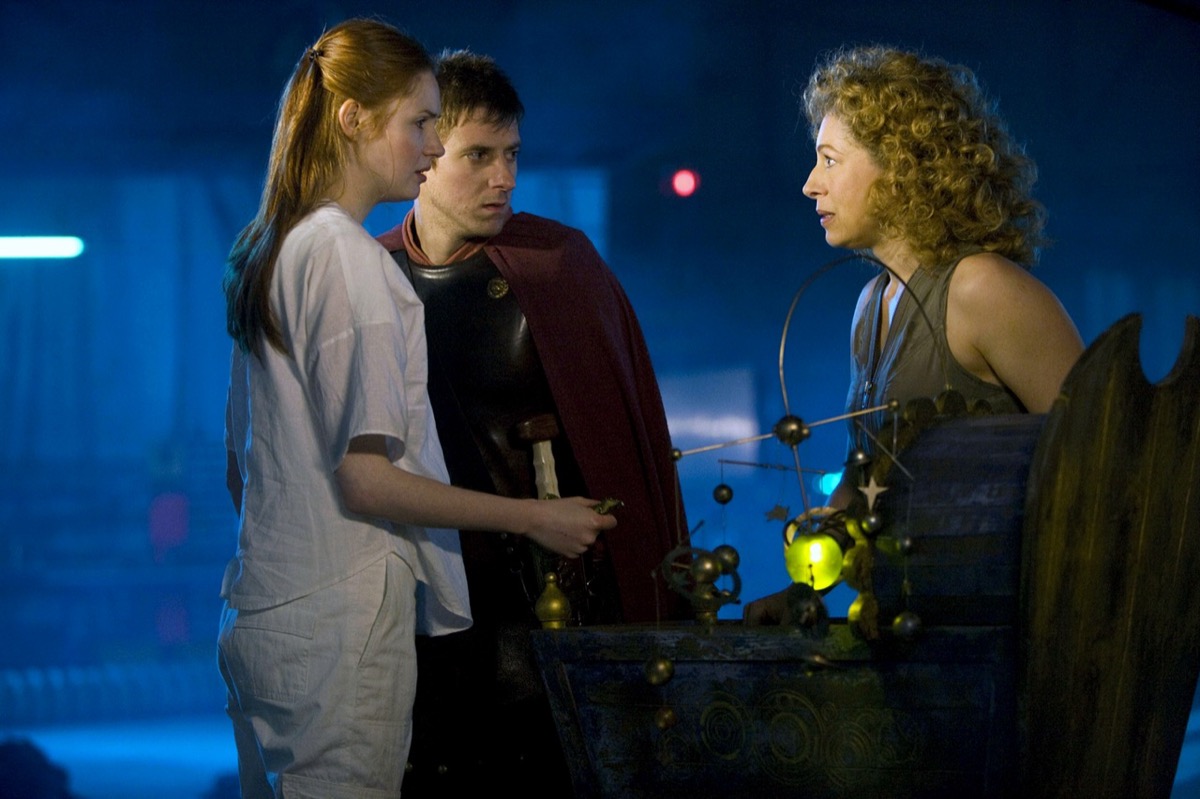 Alex Kingston’s archeologist character River Song is introduced on Doctor Who during David Tennant’s first tenure as the Doctor, but most of her story plays out when Matt Smith is traveling in the TARDIS with his Doctor’s married companions, Amy (Karen Gillan) and Rory (Arthur Darvill). Because River and the Doctor are both time-travelers, they meet out of order, with her usually knowing more about what lies in his future, which is her past (sort of).