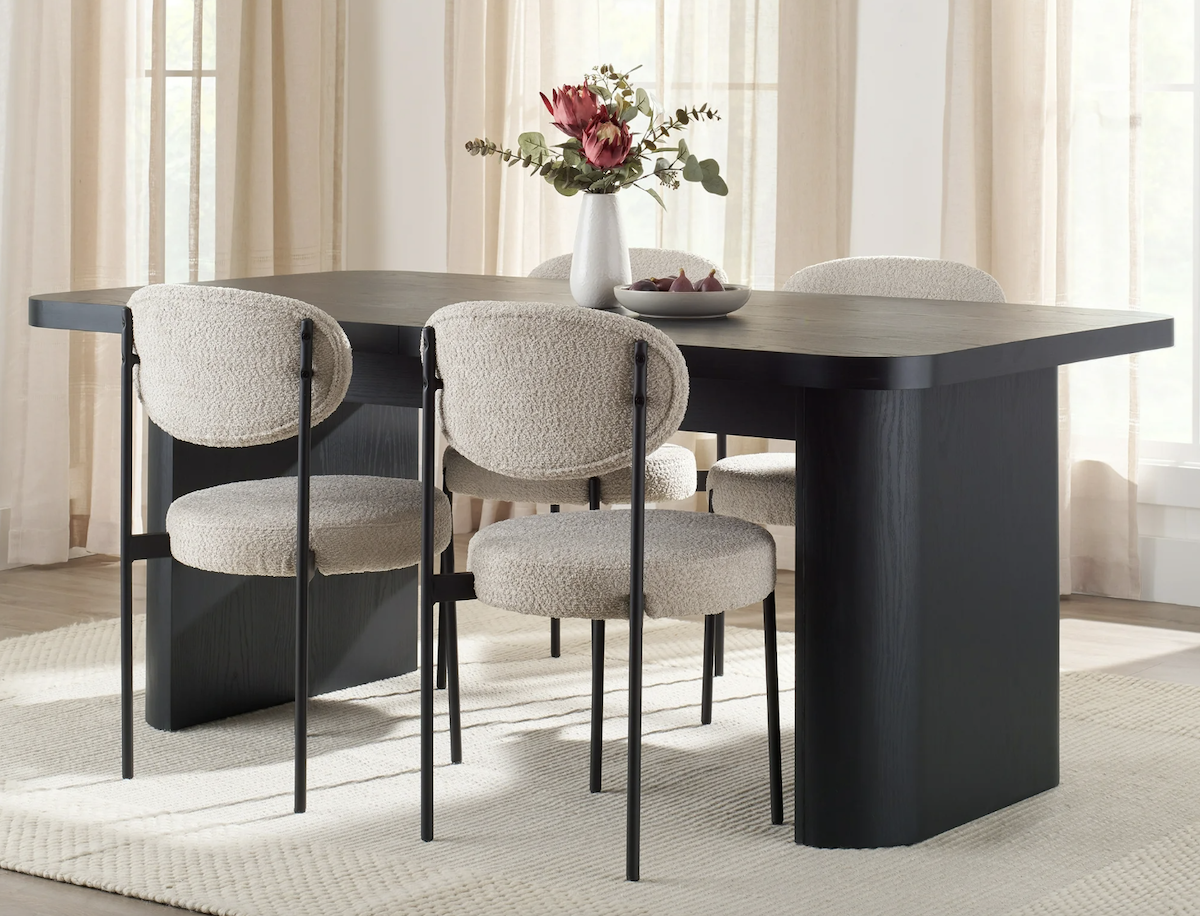 Dupe for Crate & Barrel’s Panos Black Acacia Wood Dining Table