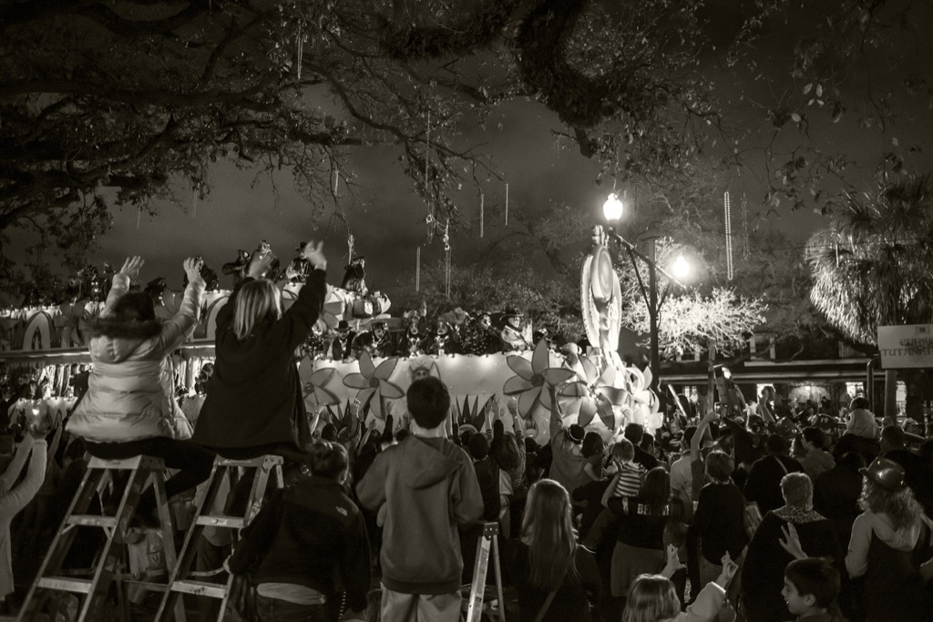 Back in the 18th and 19th centuries, electric lighting wasn’t available. So, to illuminate the parades, festival organizers conscripted torch-bearers—typically slaves or free African-Americans—to march in front of each float. These days, the tradition continues, though it’s more in the name of spectacle than anything else.