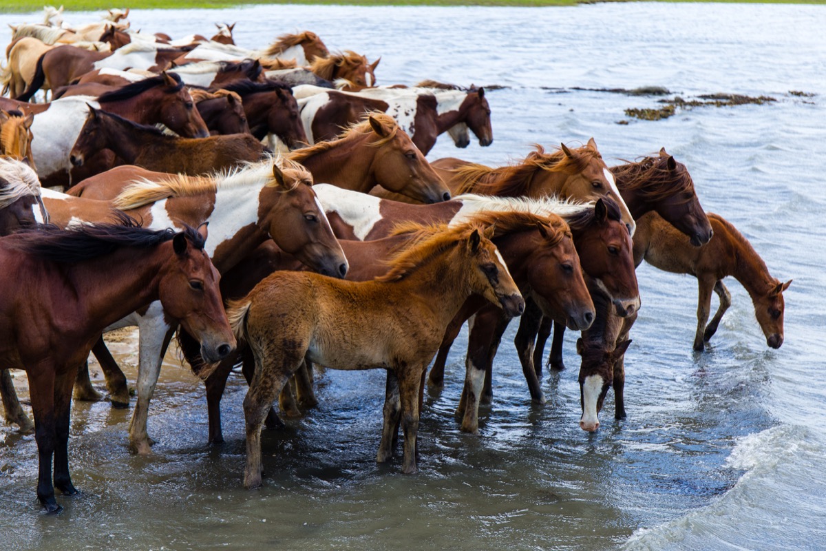 In an event made famous by Marguerite Henry’s children’s book, Misty of Chincoteague, volunteer firemen annually round up about 200 wild ponies on Assateague Island in Virginia and coax them into swimming across the channel to Chincoteague Island. The ponies are shepherded to an auction, where attendees from across the United States bid on and purchase that season’s foals.