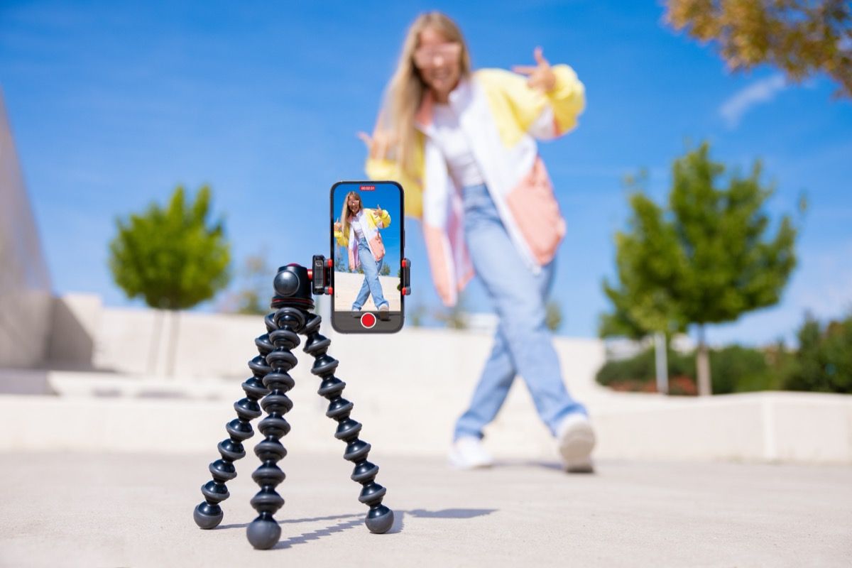 Teenage girl filming video of herself on mobile phone