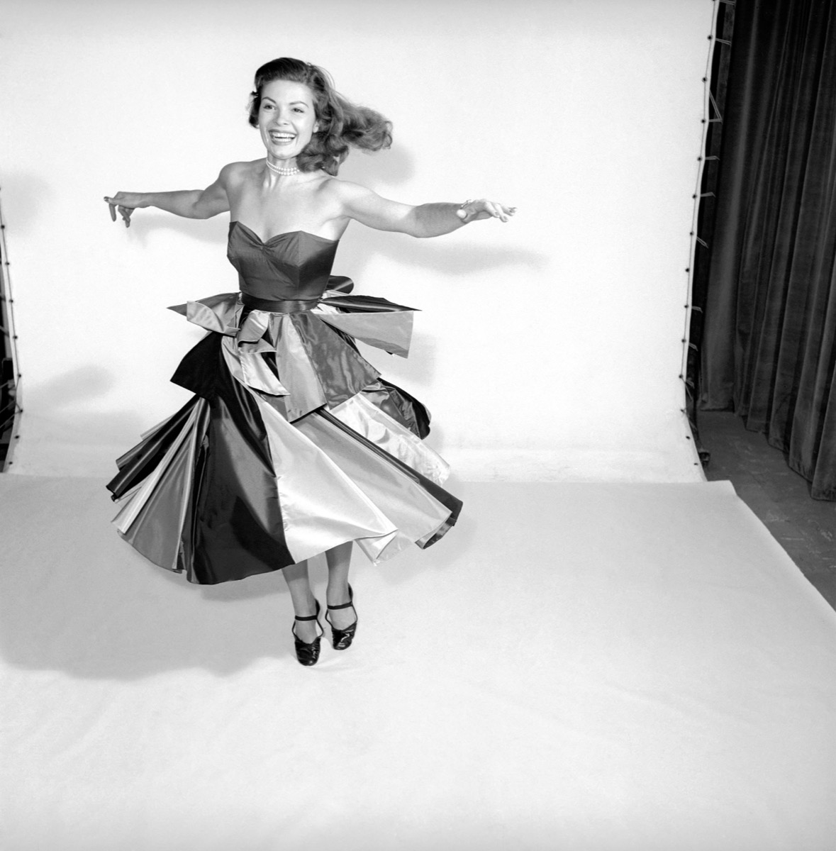 Once decorative fabric took off, it really took off. One key example is the flying panel: an extraneous piece of material affixed to the front, back, or side of a dress or coat. The new style was first featured in the April 1949 issue of Life, which pinpointed Christian Dior as the leading designer of the trend.