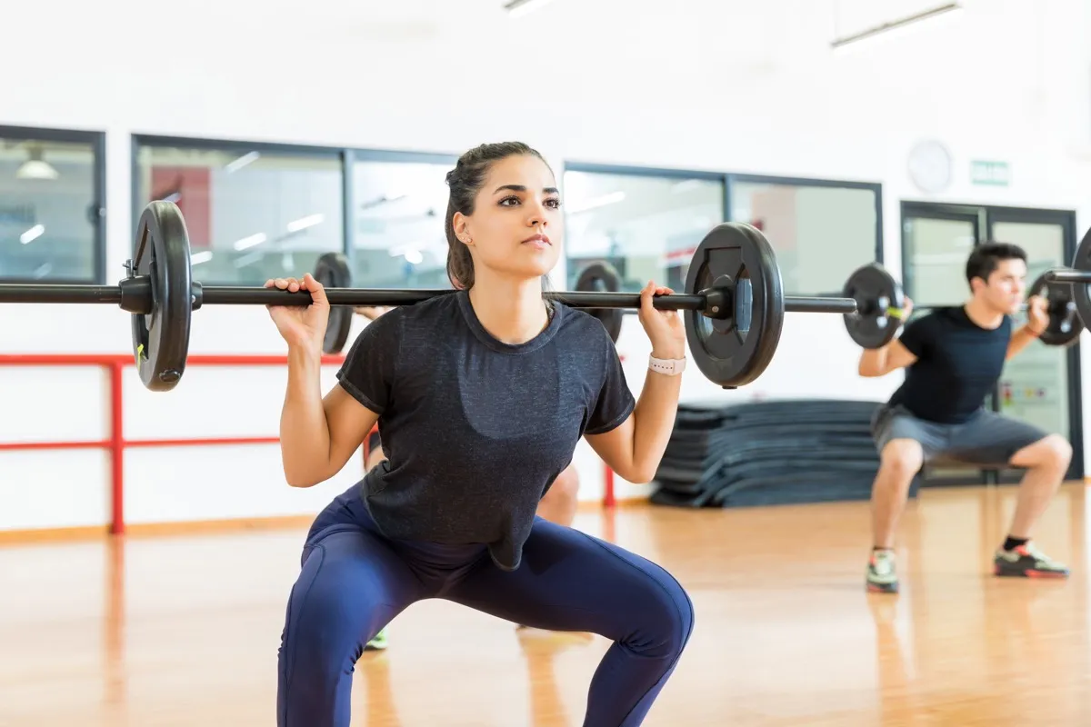 According to Ryan, the fixed bar can lead to injury because it overloads the joints on a movement path that may feel unnatural to you. It’s best to use dumbbells, resistance bands, or kettlebells to do functional movements like presses, pulls, squats, and lunges.